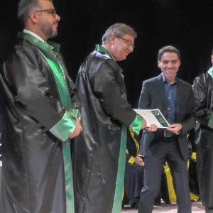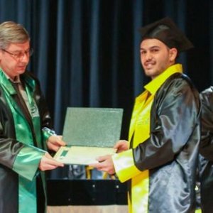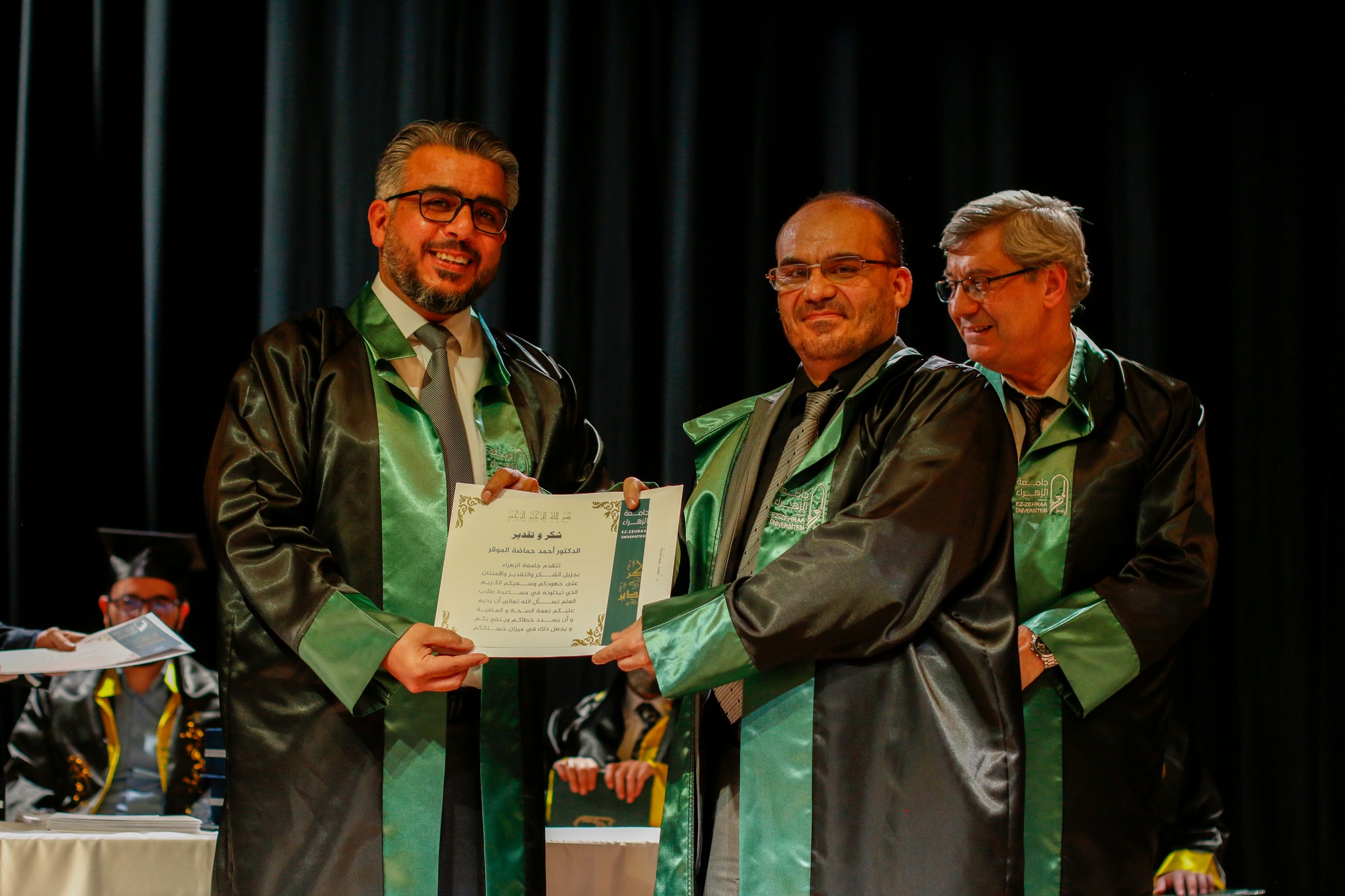 بعد ذلك قام السيد الدكتور المهندس فيصل الحسن برفقة السادة العمداء بتوزيع الشهادات وتكريم الطلبة الخريجين،